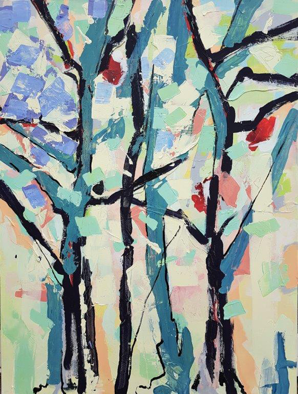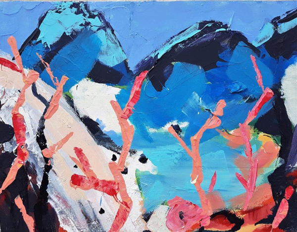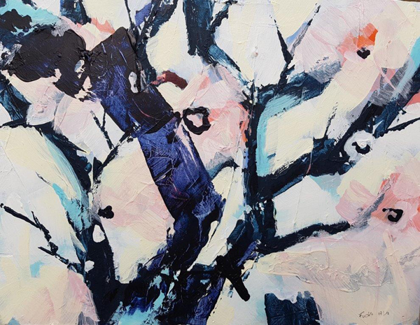 "Für Birgit Fuchs ist die Natur die Grundlage ihres Malprozesses, mit ihr tritt sie in einen emotionalen Dialog, entwickelt so ihre abstrahierende Formensprache und die expressive Farbigkeit ihrer energiegeladenen Bilder."